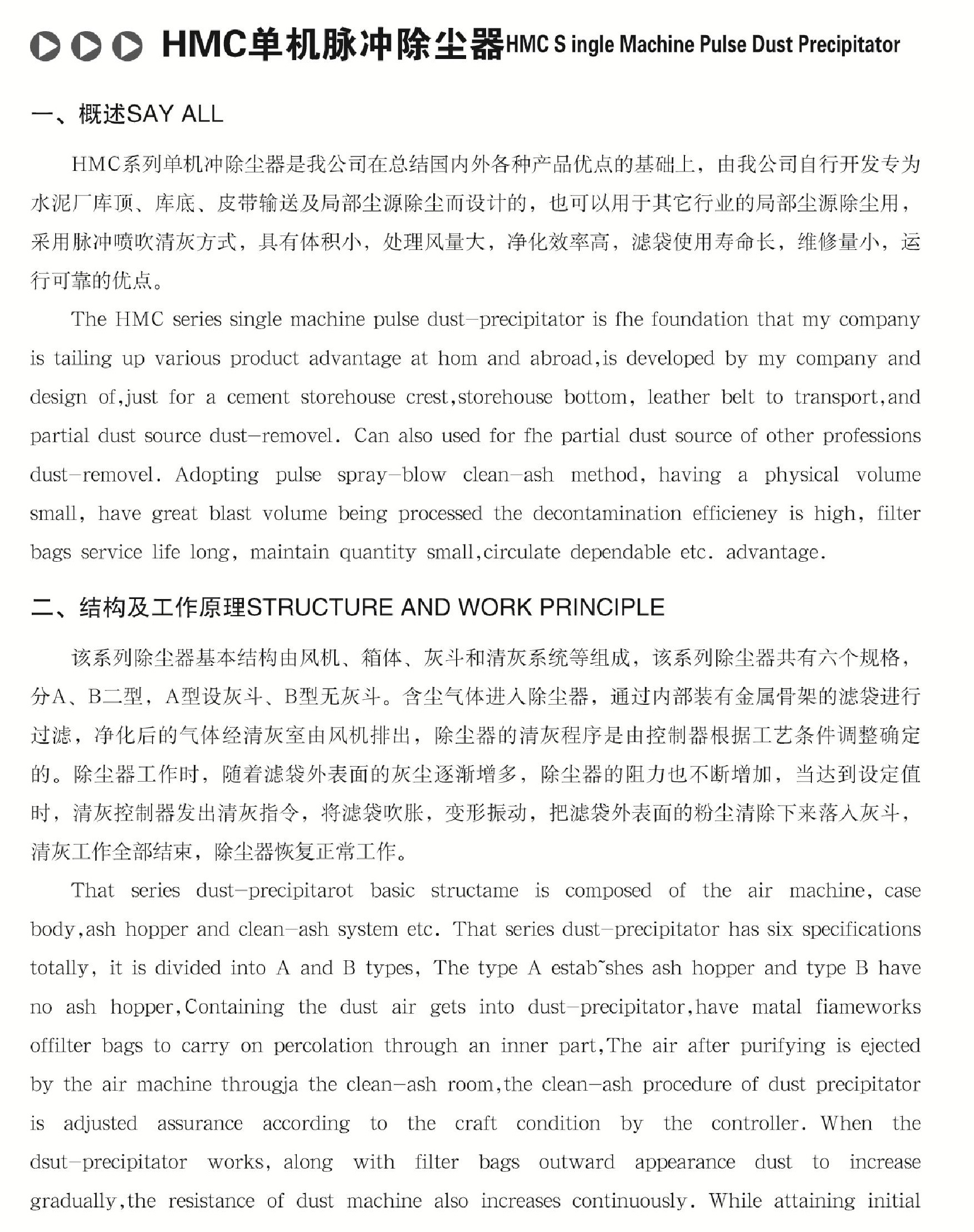 HMC系列單機(jī)沖除塵器是我公司在總結(jié)國內(nèi)外各種產(chǎn)品優(yōu)點的基礎(chǔ)上,由我公司自行開發(fā)專為水泥廠庫頂、庫底、皮帶輸送及局部塵源除塵而設(shè)計的,也可以用于其它行業(yè)的局部塵源除塵用,采用脈沖噴吹清灰方式,具有體積小,處理風(fēng)量大,凈化效率高,濾袋使用壽命長,維修量小,運(yùn)行可靠的優(yōu)點。
